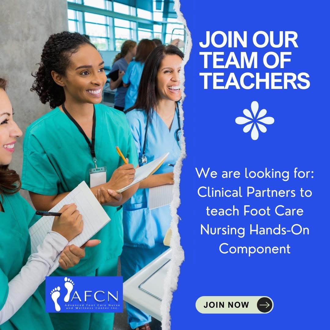 Boost your nursing career by initiating your foot care education program with Advanced Foot Care and Wellness. Whether you're beginning anew or upgrading your current curriculum, we're committed to empowering you every step of the way.