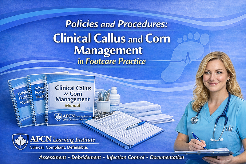 The AFCN Learning Institute Clinical Callus and Corn Management in Footcare Practice manual is a structured resource for regulated nurses providing advanced foot care in Canada. It combines policy statements with detailed procedures for safe and accountable management of various foot conditions. This manual aims to support risk reduction, regulatory compliance, and the elevation of advanced foot care nursing practice.